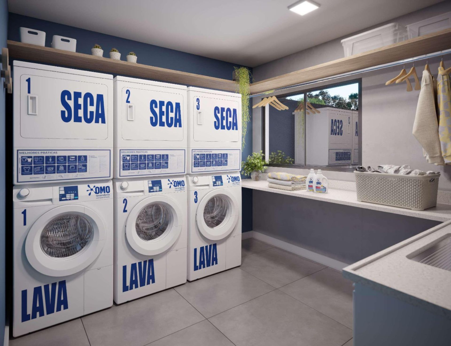 Facilidades: Coworking, Marketplace, Lavanderia OMO (pay-per-use), Pet Care e Pet Play.
